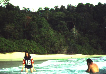 One night we were on this beach, watching orangish light flashing across the strait in the clouds. We decided that maybe a volcano was going off on Samatra. We were wrong.