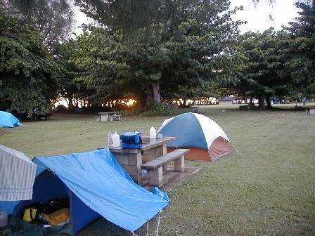 We spent a wet night at Anini Park. The Ahi and shrimp cooked by Doug in garlic butter the day berfore was ono (delicious).
