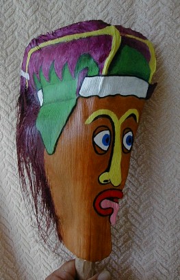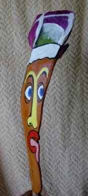 PFP 10 is just one of the palm frond faces that will be used to sponsor boomerangart.com. I have the option of accepting a direct offer "that I cannot refuse" from someone who wants to provide PFP 10 with a home. Even though I no longer have a particular PFP, it will still figure into the growing Purple Feather People Family and its continuing story. The owner may name the PFP and add to or update its story on the PFP's web page on my website or make a website of its own. Who knows where this thing is going? It is part of a living creation in both cyberspace and earthspace. I'm having fun with it and will continue to do so.