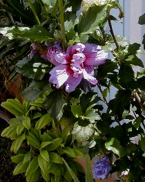 Back on the other side of the walk...the tallest plant is an unknown volunteer: