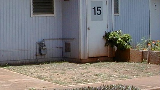In 15B's small garden area, I can plant and maintain a garden (but no vegetables). The garden that I decided on requires little upkeep and is good for a traveler. I planted boat lilies (oysterplants) as the main ground cover. I have two mosquito plants near the door. I water the plants early in the morning before sunrise. It's very quiet then and some days the clouds are very colorful.