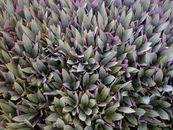 That's the patch that gave me the itchy rash. I didn't do the patch on the other side of the walk. Look how tightly packed these plants get. The oysterplants have a lot of stored water. The longest that I plan to be away is about three months. My neighbors will squirt water on them periodically, but even it they didn't the oysterplants would survive easily. Same with the other plants. You can see some weeds that have made it though above. This is how I hope it gets all over: