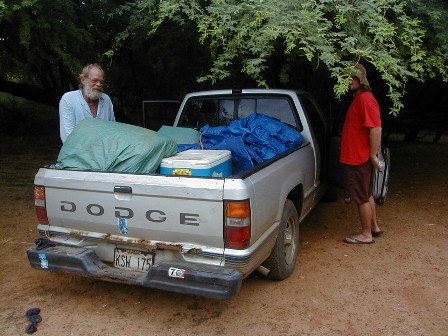 After I finished my online time last week, I did some shopping and headed out to Polihale. Jeanne, Kalalau Ron's sister, had arrived Tuesday, to give me a ride to my storage locker, but I had already left on that frustrating trip with Kirk. I had to take almost everything out of the locker before I realized that I couldn't find what I was looking for...and it was very hot in there. I also had to order new checks because my check blanks couldn't be found either. I hadn't been to the locker since February 6th when I arrived on Kaua'i.