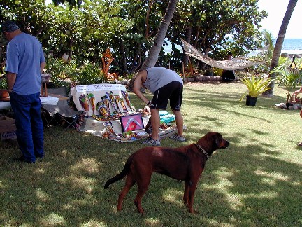 Several months ago, Doug, the Wild Duck in Nimbin, Australia, mentioned in an email that one of the visitors at Rainbow Retreat was going to be moving to Kaua'i. He is to be the new Orthopedic Surgeon at the West Kauai Clinic. Doug gave him my name and URL and Rick promised to look me up. That's what he did at the art show.