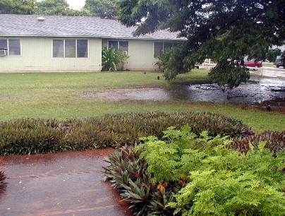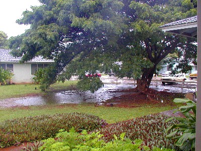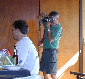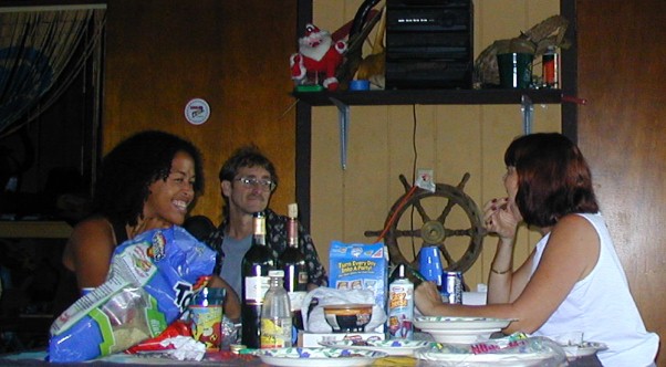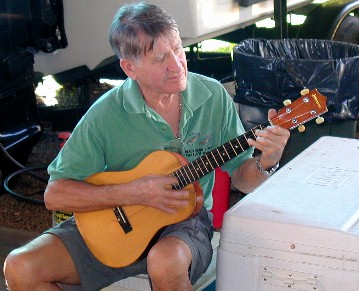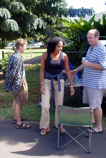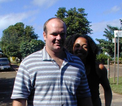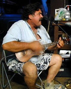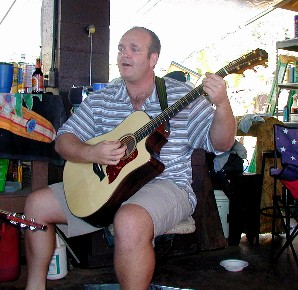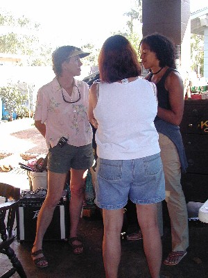On the 2nd, Dr. Rick, the new Orthopedic Surgeon at KVMH (Kauai Veterns Memorial Hospital) in Waimea,and his lady, Janet, stopped by so they could follow Greg driving Steve and me toClifford's house for a garage party. He plays fine guitar and sings. He and Janet are from New York. They had been traveling in Australia and happened to stay at Doug's Rainbow Retreat in Nimbin, New South Wales. Doug showed them this website. Here's when I first met him (far down on the Artmail 119 page) at Tashi's Art Show (Janet hadn't arrived on Kaua'i, yet).