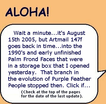 In got the idea of using palm fronds to make masks in 1995. I got my HP desktop computer, digital camera, etc. and began making web pages using the allowed "free" 5 MBs in 1998. In 2002, I switched to my current web hosting company and registered my "boomerangart.com" domain. I think all the web pages since then make up the Artmails. There has been a continuity through the years.