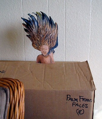 Old palm frond faces and masks back in the box.