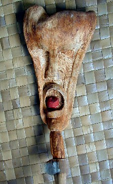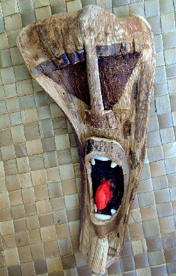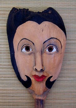 Here's the first mask I painted using a palm frond base from the coconut tree at 9C. It was done before I learned how to properly prepare the palm frond for painting. The palm frond bases from Polihale are much better to use because they are not so thick and dry out a lot thinner and lighter.