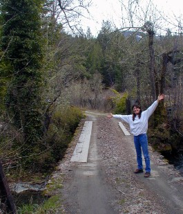 Kim, her horse trailer and old bridge.