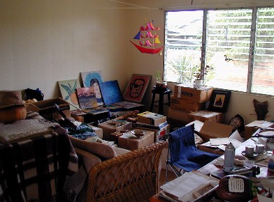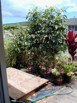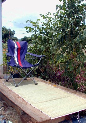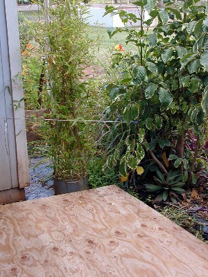 Later, a lauhala mat will be attached to the plyboard that can be leaned under the eaves if it rains.