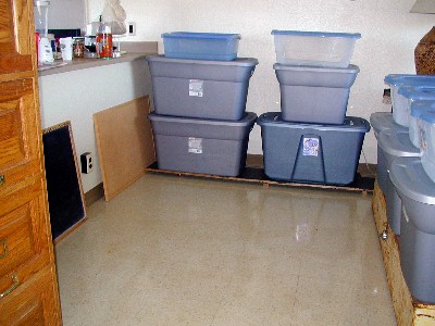 Plastic storage boxes waiting on May 5th.
