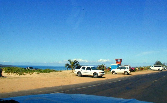 This and the following three photos show the highway next to Kekaha Beach from Kekaha Park to the Lifeguard Tower.