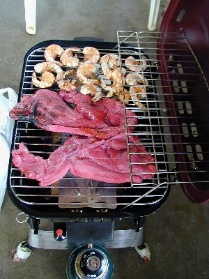 Parnell was the chef and cooked the grinds...It was ono...That's a marlin sausage, flavored with Portugese sausage flavoring, but the meat is marlin and it is packed in deer intestine. It was a real surprise...very good.