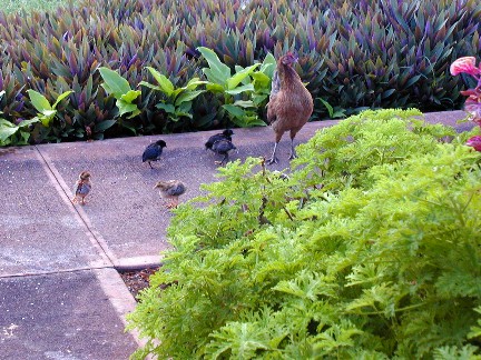 Mama took a rice bribe and let me snap these shots of her chicks.