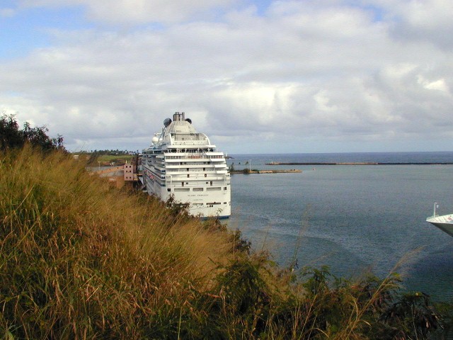 After a quick stop at Wal-Mart, we took the road past Nawiliwili Harbor and two cruise ships...