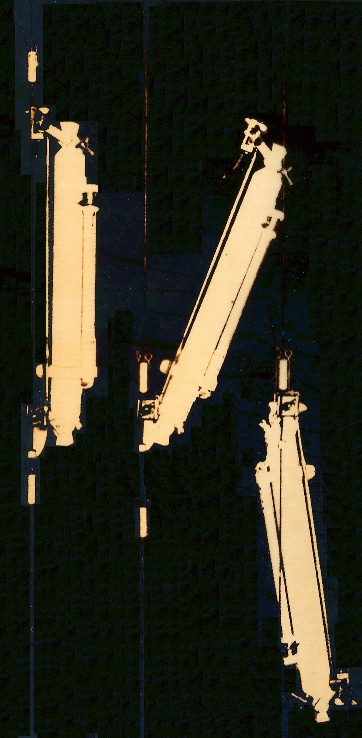 Left: Before reversing; messinger approaches releasing mechanism. Middle: first messenger has released the second. Right: in reversed position.