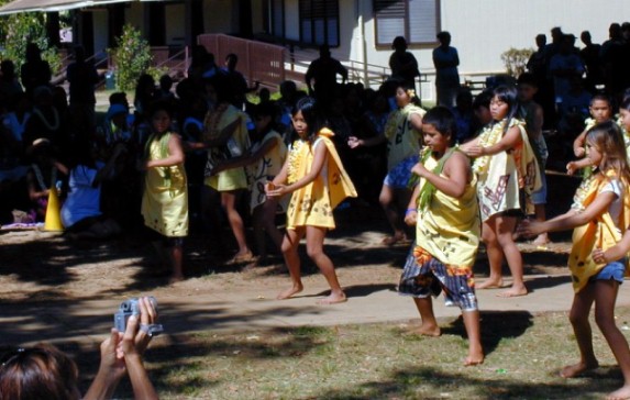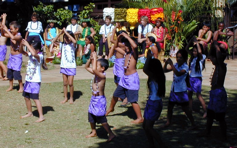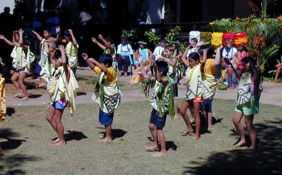 Next, the kindergartners...to do their hula dance...