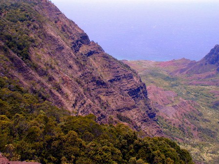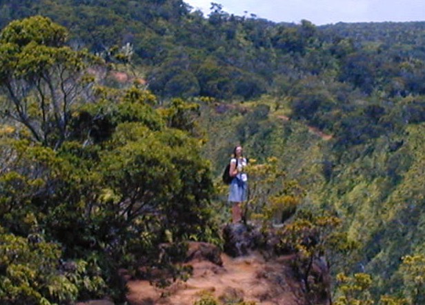 It turned out, on that week day morning, there were no compact rental cars available anywhere. We took the bus to Kekaha instead and got in my old, questionable Tercel and some munchies and headed up to Koke'e Park and the Waimea Canyon and Kalalau Overlooks. (Trusty Tercel made the trip fine and no over-heating).