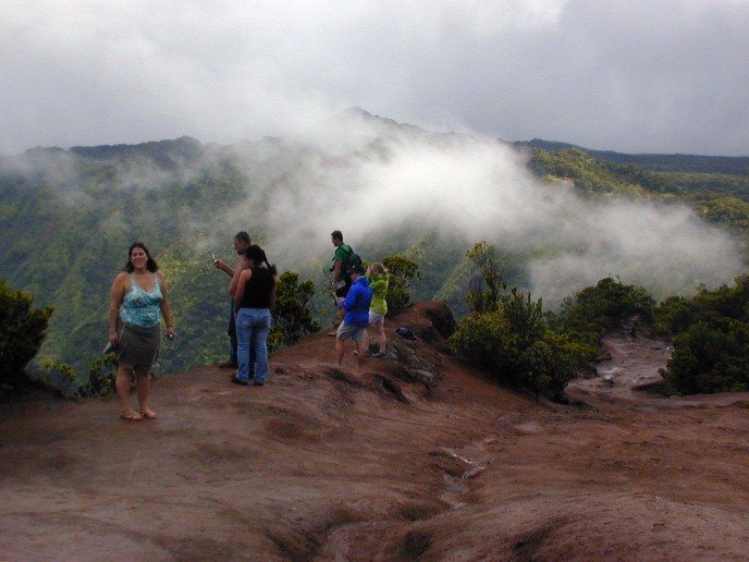Then we drove to the end of the road to Pu'u o Kila Lookout for a good view of the Kalalau Valley under the clouds.