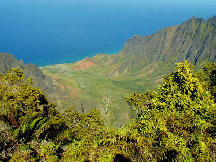 A look down onto the floor of the Kalalau Valley.