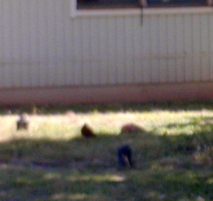 Apparently, The Orphan hadn't learned "chicken language." As she became adult-size, the occasional rooster would take notice, but she did not join any clutches that I could determine. Eventually, she stopped coming around and I assumed that she joined a clutch that didn't have 15B in its territory.