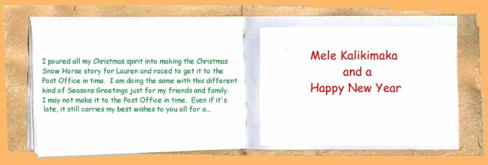 Before I talk about Kevin and Lorilyn's visit to Kaua'i, I'm going to put a copy of the Christmas Snow Horse I painted on cocofiber for a cover of the story booklet I made for my seven-year old granddaughter, Lauren.