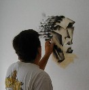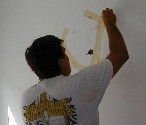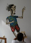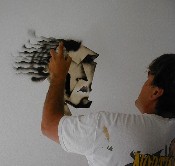 My son, Michael, did one of his spray can figures on Ryan's bedroom wall. A picture story of the art follows: