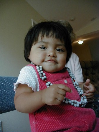 Lauren likes her Hawaiian Job's Tears lei made by Alice on Kauai.