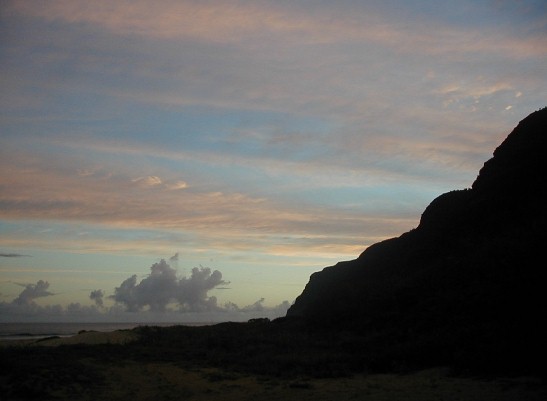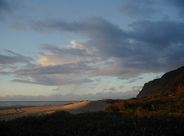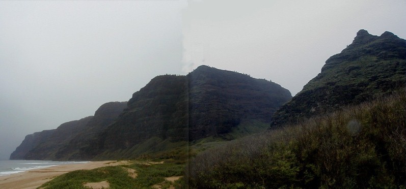 It's been a very different year at Polihale...a lot of rain which makes it very green. Quite a few people who have visited Polihale and have my URL go to Artmails and see how Polihale changes throughout the year. I have taken a bunch of photos and have quick-stitched some together. Also, there has been some newsworthy activity near Polihale. This created a Ranger Danger situation. Yes, I got hassled...I have moved to another place much more isolated, but still close enough to all the necessary facilities. It's already the 21st. I haven't really had a lot of computer time...clouds blocking the sun and rain closing the solar panels.