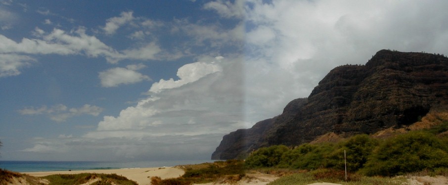 So you can get an idea of where my "field studio" is and where the accident happened, I've manipulated a before-Iniki aerial photo. In the enlargement, my spot is where the upper right white dot is.