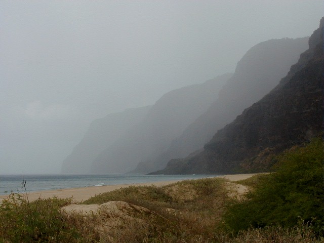 I went to Polihale and it started raining at my place. I didn't want to set up my tent etc. so I came back to Kekaha to work in 15B. I took these photos while at Polihale: