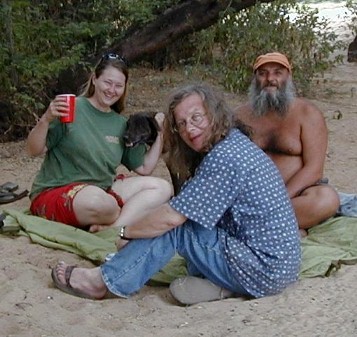 Mo'o with Dallas, Gilbert and Kalalau Ron at Polihale on August 4, 2002.