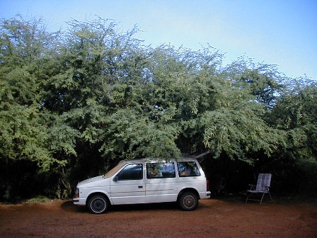 Two views of my van at CaneTop where I work, cook, and relax.