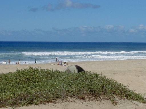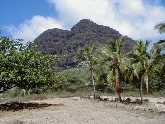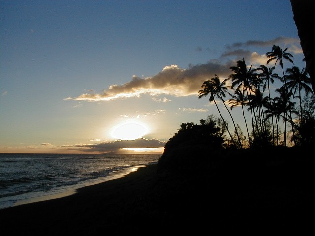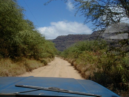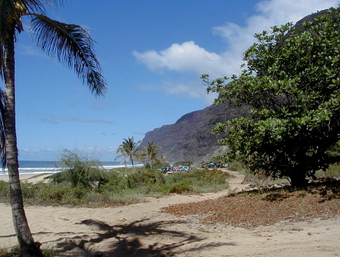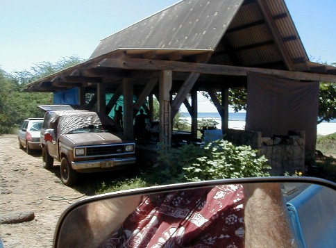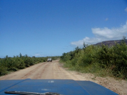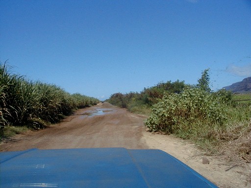 Sunday, I was thinking that I would put more photos from my 1999 visit to the island of Atiu. I hope to return for a visit in early 2004. The phone rang. It was Clifford. At work at Polihale when he was walking up to Pavilion Two, he was asked what was wrong with the state pickup. He turned around and saw smoke coming out from beneath the hood. There was an electrical fire going on which he put out with the fire extinguisher. He had a ride into town as he was calling me. He was on his way home to get his pickup to return to Polihale to get his things out of the truck. He asked me if I wanted to go along. Of course I did. I hadn't wanted to drive out the day before because it had rained Friday and I didn't want to deal with the mud. So, riding shotgun I could take some photos. My camera batteries weren't charged! I did a quick charge until he arrived. I had no idea how many photos I could take with those incompletely charged batteries.