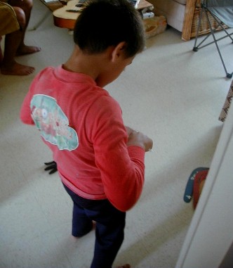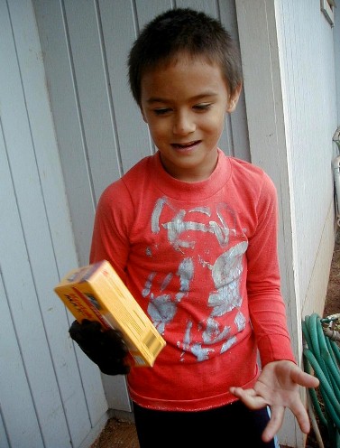 I have a lot of different things to work on for this Artmail, but some of that will have to be put up tomorrow or the next day. When I was working on Artmail 80, there was a knock on the door. It was RJ. He was coming for the present that I wasn't here to give him because I went to Polihale on the 23rd. I took a few photos. He wanted to play one of the educational games on the computer. Then his sister, Lani, rode by on her bike and saw his bike on my walk. She's a computer whiz and told him what to do then sat back and watched. Then she played. We got other CDs with more games. Then it was time to go and I came back in here and uploaded Artmail 80. Here are the photos: