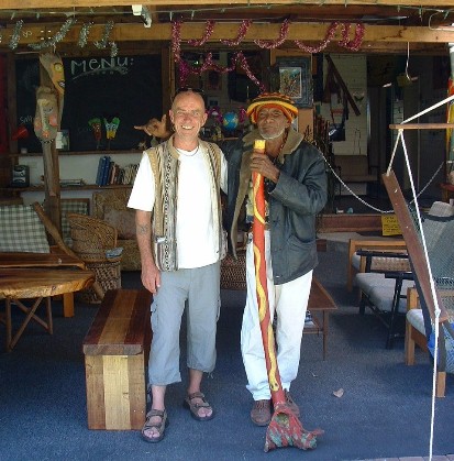 I received an email from the Wild Duck, Doug, in Nimbin , Australia. He sent an interesting photo of two special people who visited at Rainbow Retreat...a shaman from Scotland and an Aboriginal medicine man with didgeridoo.