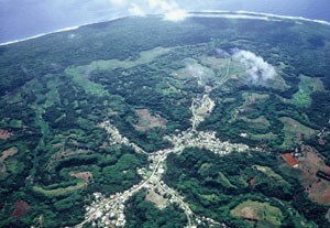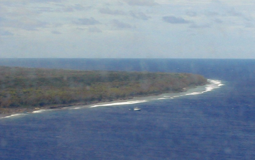 When I put the photos on the page, they will not necessarily be in the order that I took them. I went to the harbor shortly after arriving, so I'll show my arrival, the harbor, and the road up to Are Manuiri. The five villages of Atiu are at the top of a 14,500 mountain...only the top 230 feet are above sea level. I want to show a few of the photos from the airplane so you can see the location of the harbor.