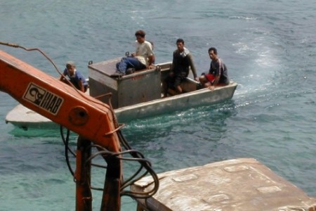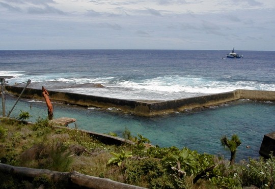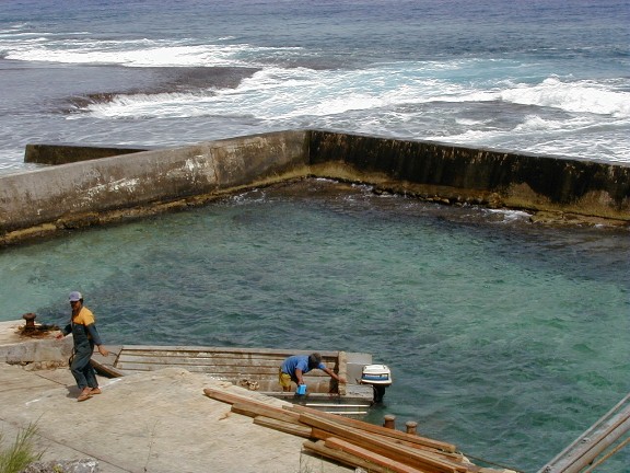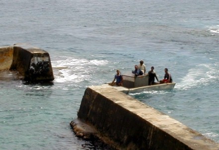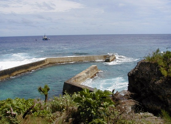 All the supplies for the island arrive by sea in small ships as shown or by planes like the one carrying me. The harbor is at the extreme left.
