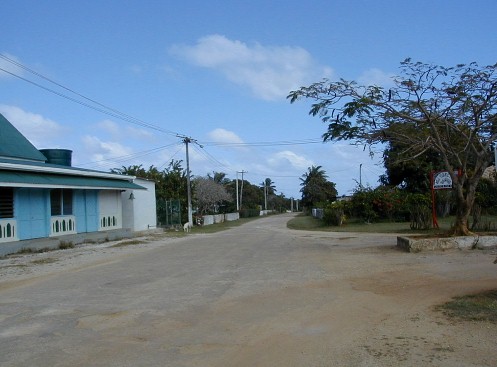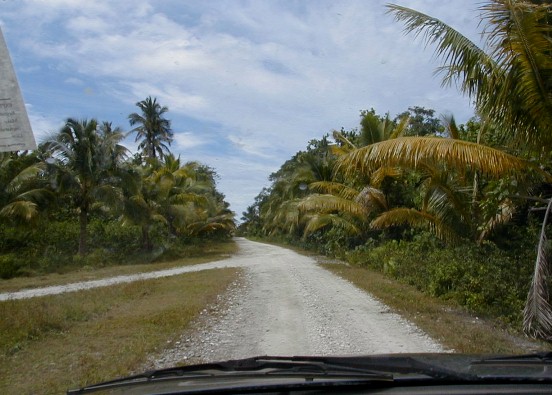 Looking left from the front of Are Manuiri and looking right on the main road of Atiu.