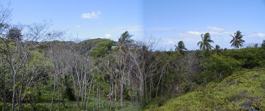 On my last day on Atiu, I wanted to get photos of Atiu's lake, Teroto. In 1985, while on Rarotonga, the capital island of the Cook Islands, I purchased the book pictured. In it was a black-and-white photograph of Teroto taken from a distance and also a description of the lake. It is a freshwater lake which is tidal (water leval fluctuates with the tides). There are fish and eels in the lake and many Atiuans learned how to swim there. There is a tunnel connecting the lake with the sea (see map). The photos that I took were the first and only color photos I've seen of Teroto.