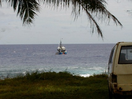 Juergen, from Are Manuiri, met me at the airport and informed me that a supply boat was unloading at the harbour (harbor) and we could go there to take photos. (You can see it in the first 'getting closer' photo.)