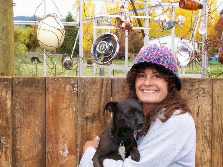 The "found art" wind screen that is being completed for protecting the green house.