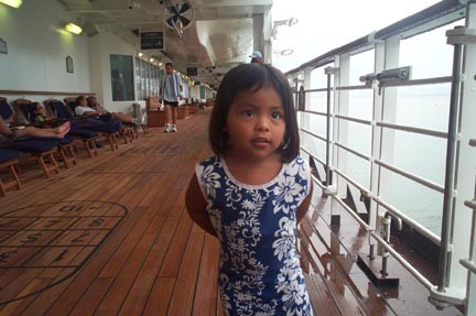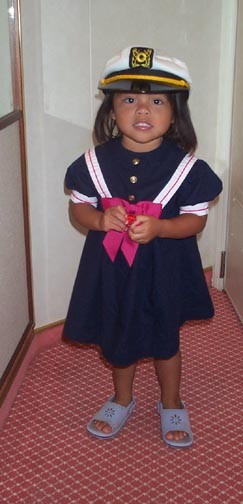 Lauren in her sailor suit. She was saluted by most employees. She is pretty independent and likes to do things for herself, so more often than not her shoes are on the wrong feet...like right here.
