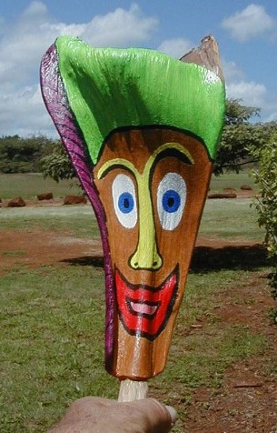 Acrylic on gesso on prepared coconut palm frond base from Polihale, Kaua'i.