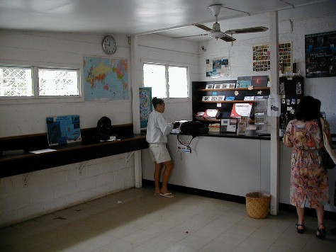 Inside the post office.