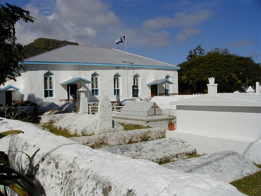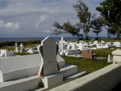 On Rarotonga one sees graves above ground in yards and in cemeteries. Here are some photos of a cemetery not too far from the airport. The view of the road and mountains first.