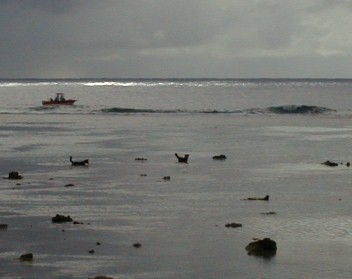 One of the unexpected things that visitors may notice on the reefs are dogs catching fish to eat. There are a lot of dogs on Rarotonga and they learn how to get their own food. Here are two zoom shots of fishing dogs.