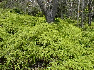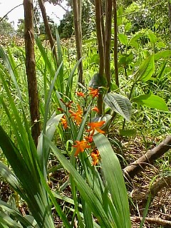 Later we all started down the Awa'awapuhi trail. After a mile and a half, my recently wounded foot stepped on too many roots, rocks, etc., so I turned back to make sure that I would make it.The young ones went on, Renee taking the better camera to record the view.