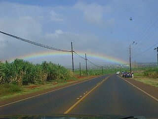 On the way, I took a photo of a "killer" rainbow over the cane field through the windshield.