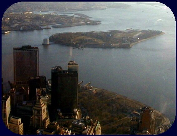 The photographs up to now have been taken from inside the observation level through glass. It causes some unwanted reflected light in the images. So, I decided to go on up to the roof. That's Governors Island.